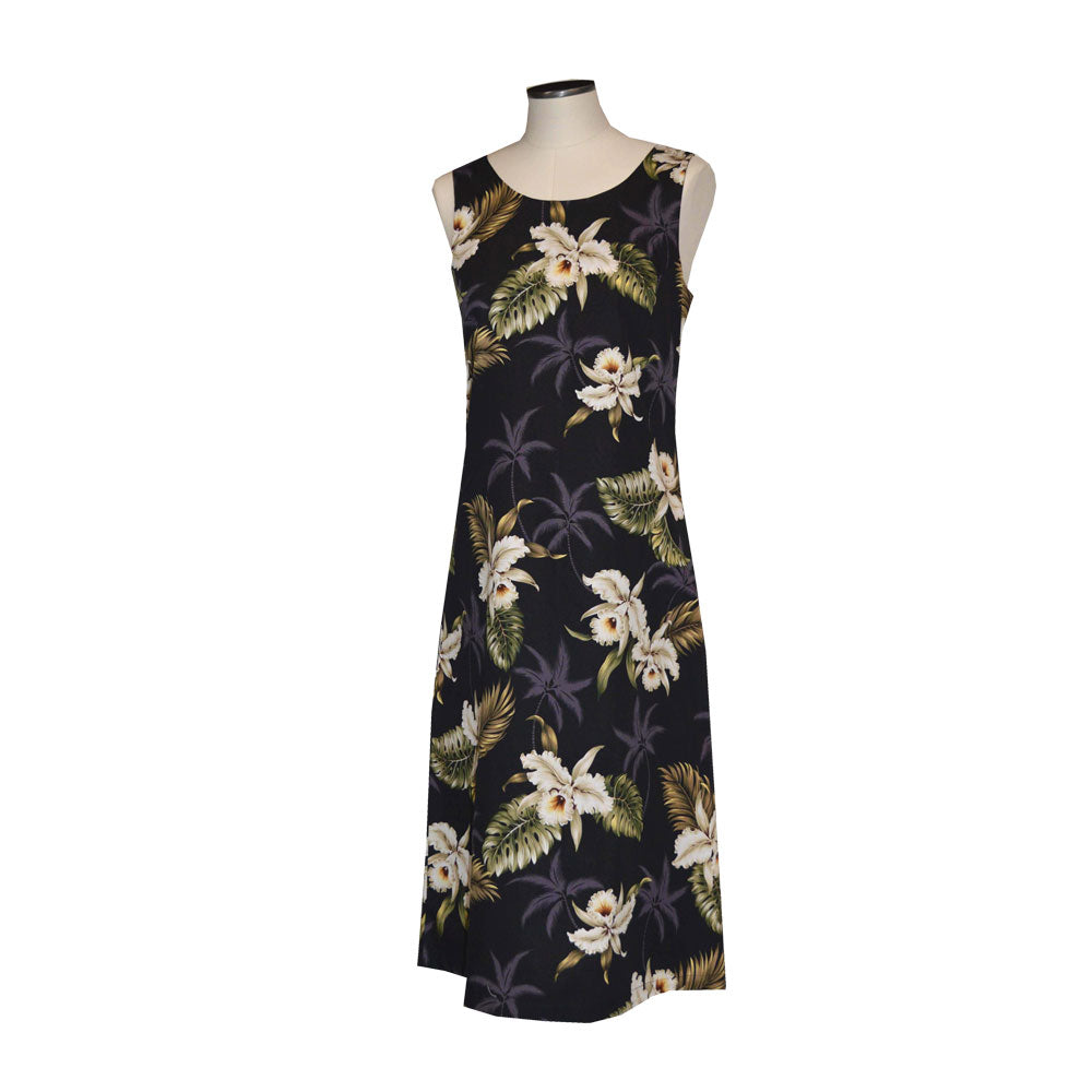 Celebrate aloha with our orchid navy cotton Hawaiian sundress, crafted from 100% soft cotton poplin for breathable comfort. Its knee-length A-line design with front and back darts and smooth back zipper ensures a flattering fit for all occasions. The delicate white orchid print on navy evokes Hawaii’s tropical elegance, making it a perfect gift for mom, a loved one, or yourself. Perfect for summer vacations, casual outings, or island-inspired events, this dress embodies authentic Hawaiian charm and timeless style, proudly made in Hawaii, USA.
