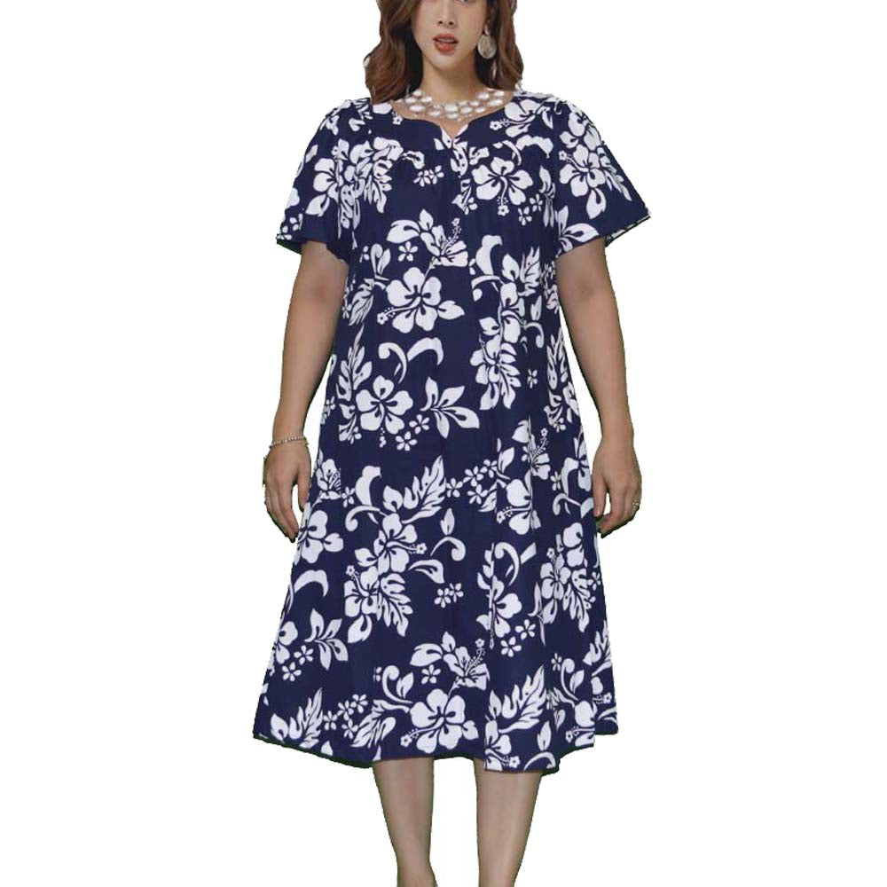 Step into island elegance with this authentic Hawaiian muʻumuʻu dress, handcrafted in Honolulu, Hawaii – USA. Made from 100% soft cotton, this navy dress features an exclusive Hibiscus print by Ky’s Aloha Shirts, celebrating the timeless beauty of Hawaii’s tropical flowers. The A-line silhouette with mid-calf length ensures a graceful flow, while the sweetheart neckline, short sleeves, and handy side pocket add both comfort and charm. Perfect for Hawaiian luaus, hula performances, cultural events, or everyday island wear, this muʻumuʻu blends tradition, comfort, and Aloha spirit.